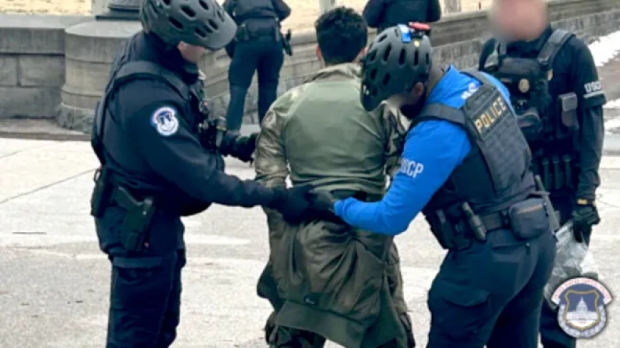 Police later located his SUV parked in front of the U.S. Botanic Garden along Maryland Avenue, SW. Inside the vehicle, officers reported finding a gas mask and a helmet. A fixed-blade knife was discovered on the ground roughly 40 feet away.