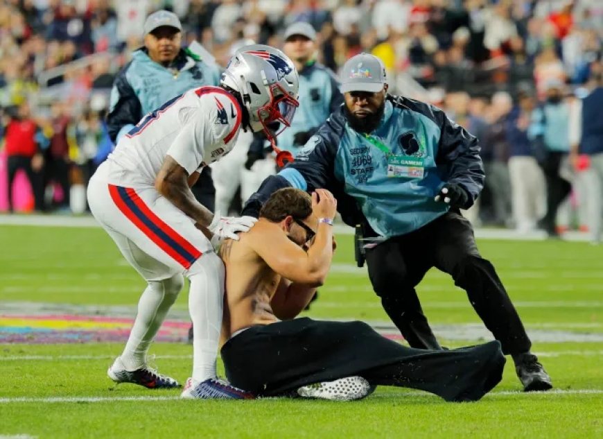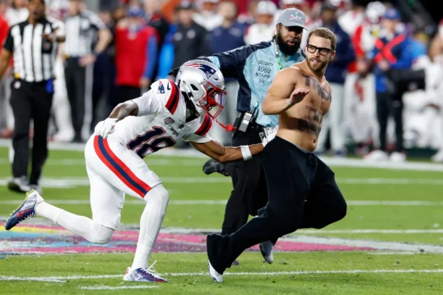 Super Bowl streaker displaying cryptic message taken down by New England Patriots star